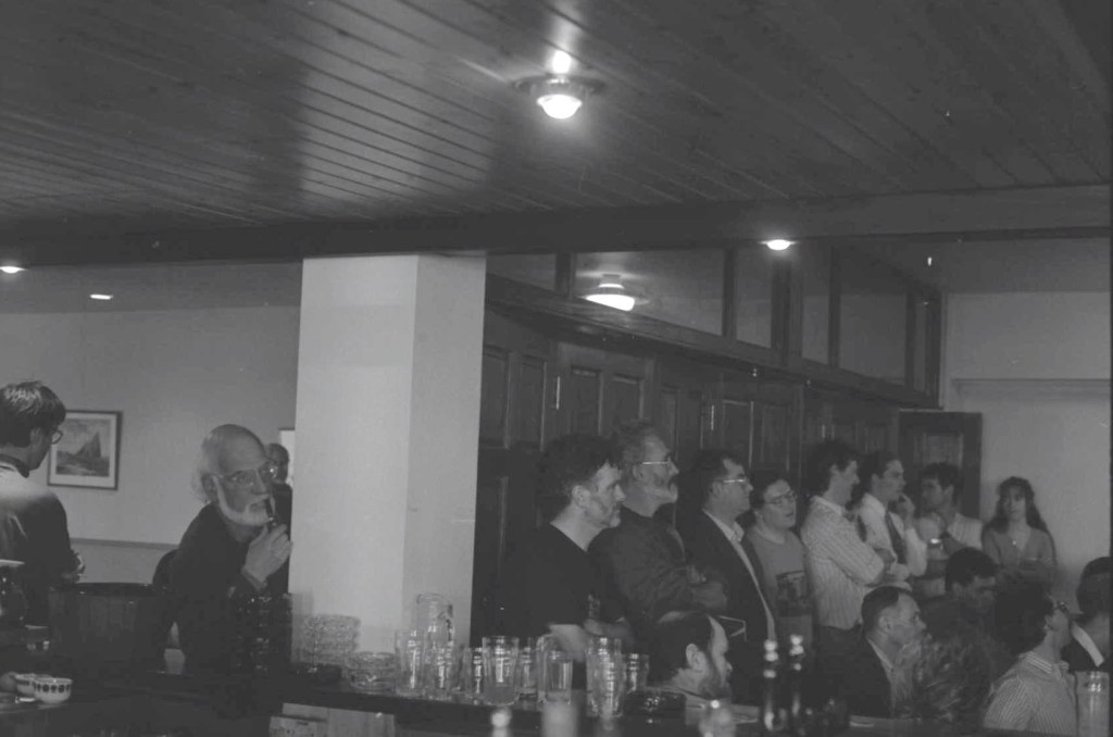 Photo: Bob Quinn at a meeting regarding Teilifís na Gaeilge, 1 May 1993, Ostán Cheathrú Rua (Photo: Grattan Healy)